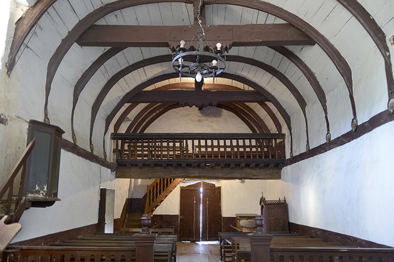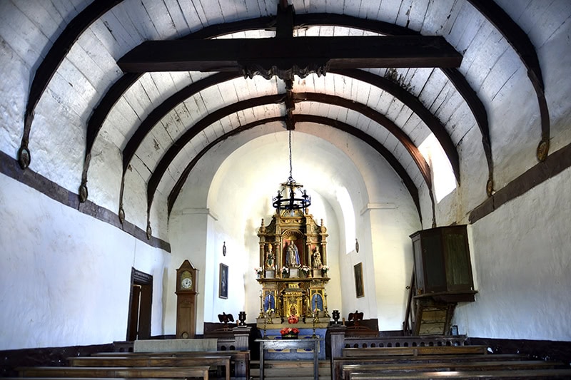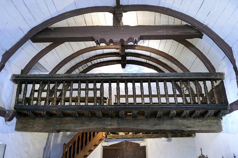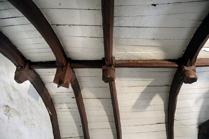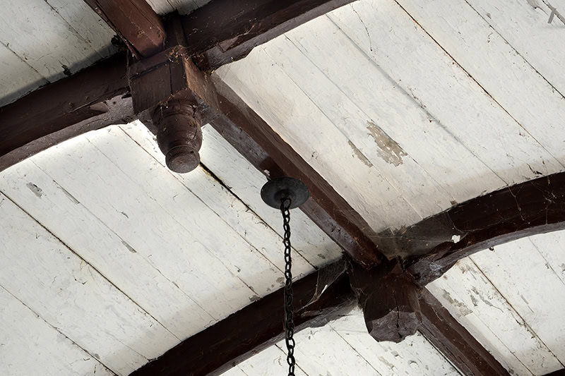 La tablazón va blanqueada con cal. En cambio, los nervios, claves y tirantes se pincelan en marrón.