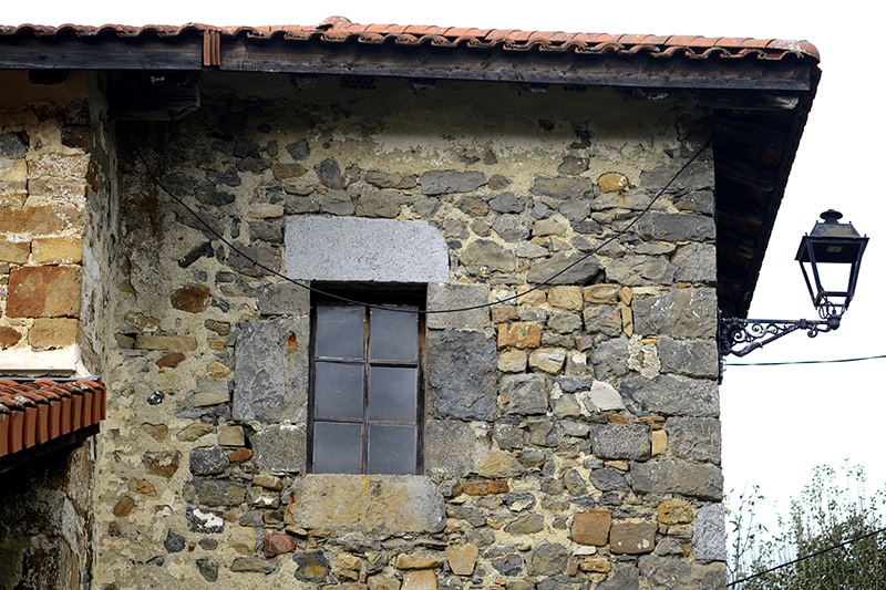El aparejo es mampostería, con sillares en esquinazos y recerco de vanos. Este material aparece generosamente enfoscado al exterior y totalmente raseado por dentro.
