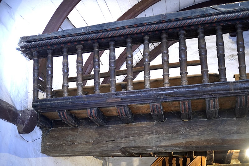 Los balaustres siguen el habitual modelo torneado habitual desde el siglo XVII, aunque quizás en este caso no vayan más allá del XIX. No obstante, en la carrera inferior aún puede seguirse la acanaladura en la que encajaría un anterior sistema de tablas ensambladas, quizás perforadas en celosía, como era frecuente en el XVI4SANTANA EZKERRA, 1996, pp. 90-91.. A esta misma cronología corresponderá el pasamanos, con sus decoraciones biseladas.