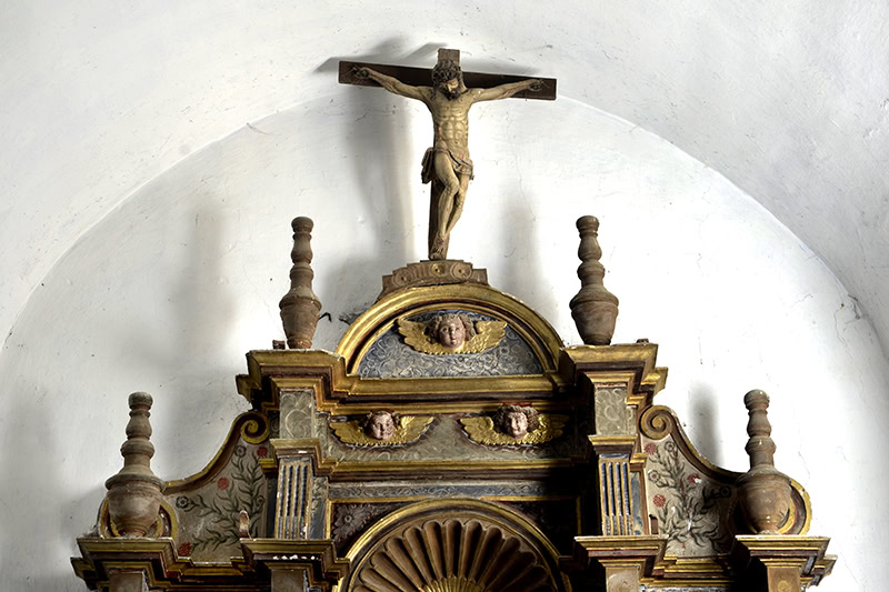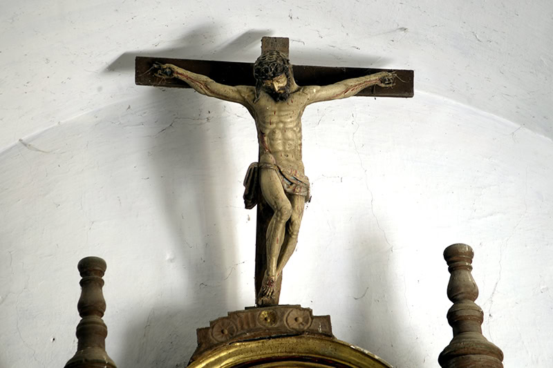 A ese romanismo corresponden también parte de las imágenes. Las del sagrario [37] [38] [39], de anatomías corpulentas y fornidas telas. Y el Cristo crucificado [42], que muestra el torso y la musculatura bien marcadas y se cubre con un paño de pureza bastante fino.