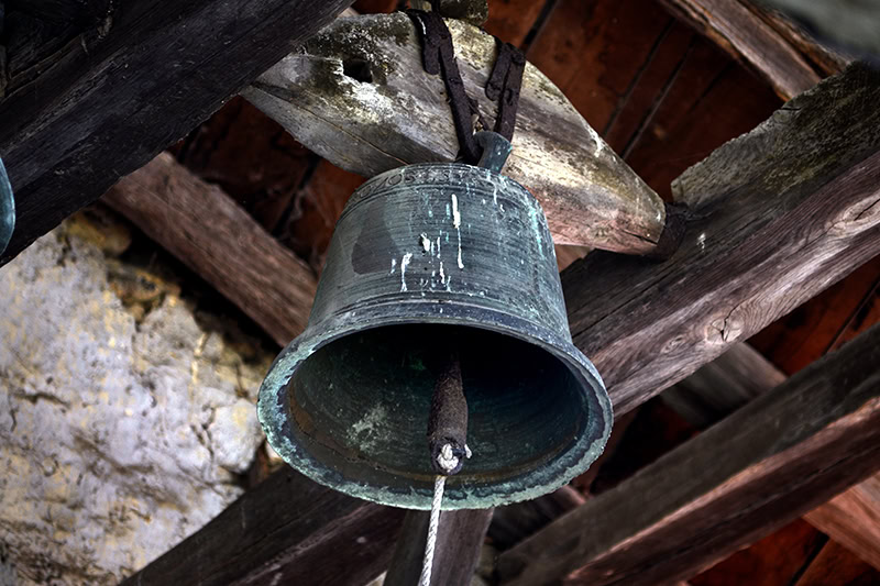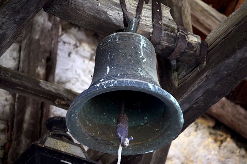 Campana [48] (45 x 50). Bronce: Esquilonada. 1840. Lleva inscripción: IHS AÑO 1840… MARIA ORA…17Ibid.. Posiblemente sea por la que se indicaba en las cuentas de 1845 que se habían pagado 314 reales “deducido el valor de la vieja que pesava ciento sesenta libras”18AHEB-BEHA, Parroquias de San Lorenzo Mártir y Santa María de Orozko – Urigoiti – Zaloa, Cuentas, inventarios y visitas 1813-1941. Signatura: 3006/002-00..