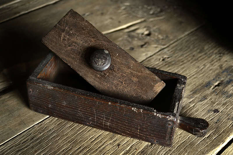 En la sacristía, atabaka (caja petitoria) [57] (7,5 x 22,5 x 11,3). Madera. Probablemente del siglo XX.